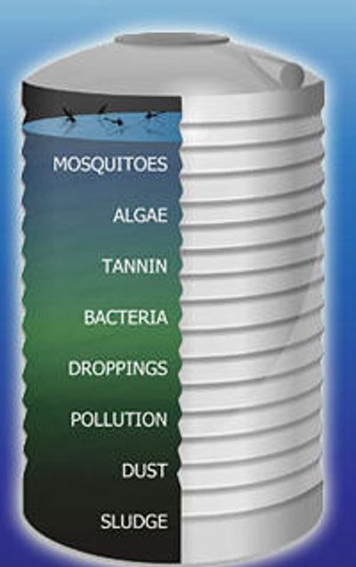Even though water tanks have strainers, plant material, animal waste and sediment will still find their way into the bottom of your tank. Over time, this turns into a layer of sludge which can become a breeding ground for harmful bacteria and become potentially dangerous to your family's health (causing vomiting, stomach cramps, diarrhoea and other health impacts).